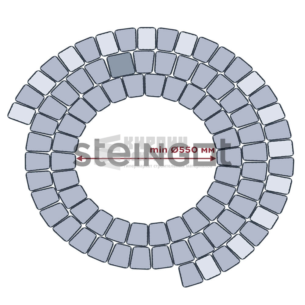 Данная форма может быть изготовлена в любом цвете из палитры производителя. Минимальная площадь заказа 150м2. Срок изготовления от 2 недель. Необычная, необыкновенно гармоничная форма Классика Арко универсальна и незаменима для разделения зон на поверхности мощения, для использования вместо бордюров и для сложных радиусных узоров. В цвете Fumo Bello камни Классики Арко лучше всего выполняют функцию разделителей и отбортовок и сочетаются с большинством вариантов из коллекций ColorMix и Premium.